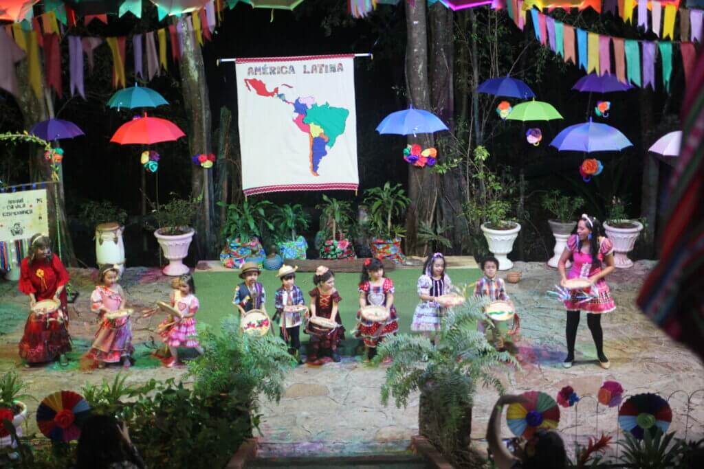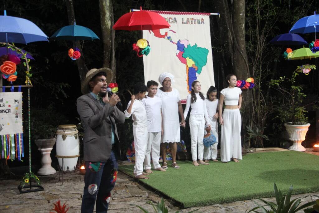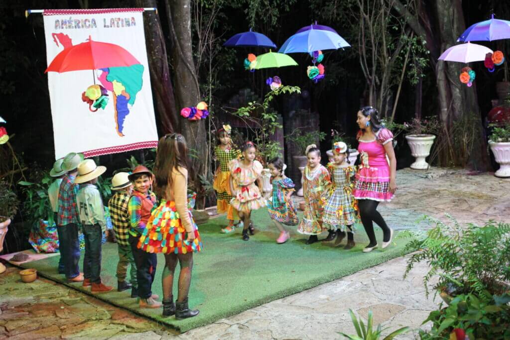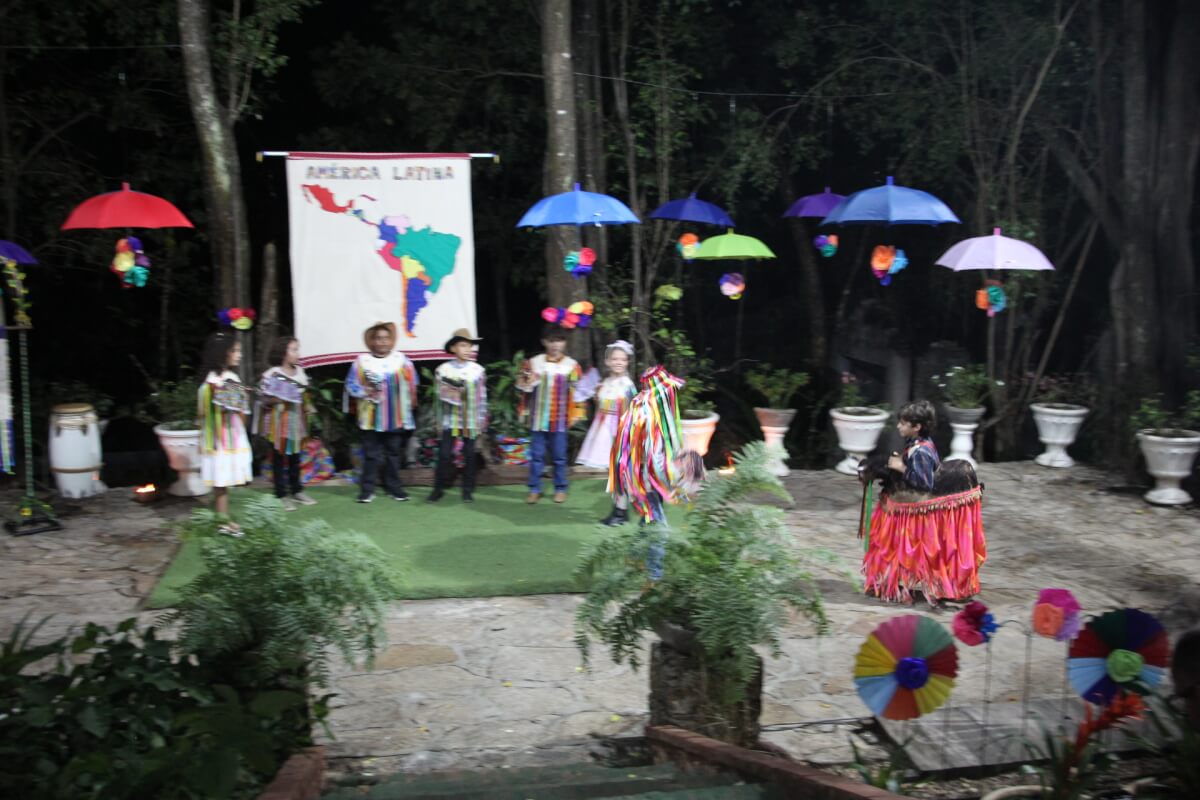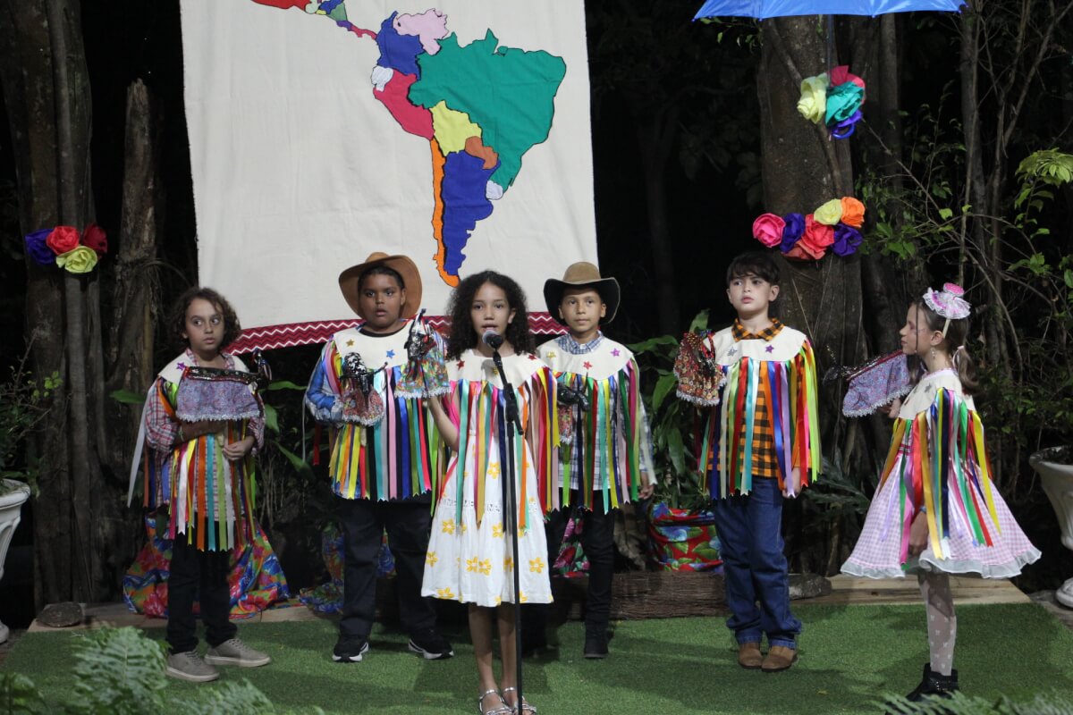 Com as boas vindas de Robson e Lucia, a festa teve início com a Turma Canarinho dançando ao som da música “Penerô Xerém”, de Luiz Gonzaga, seguida da simbólica “Dança do Sol” – inspirada no Inti Raymi, tradicional celebração andina ao Deus Sol.