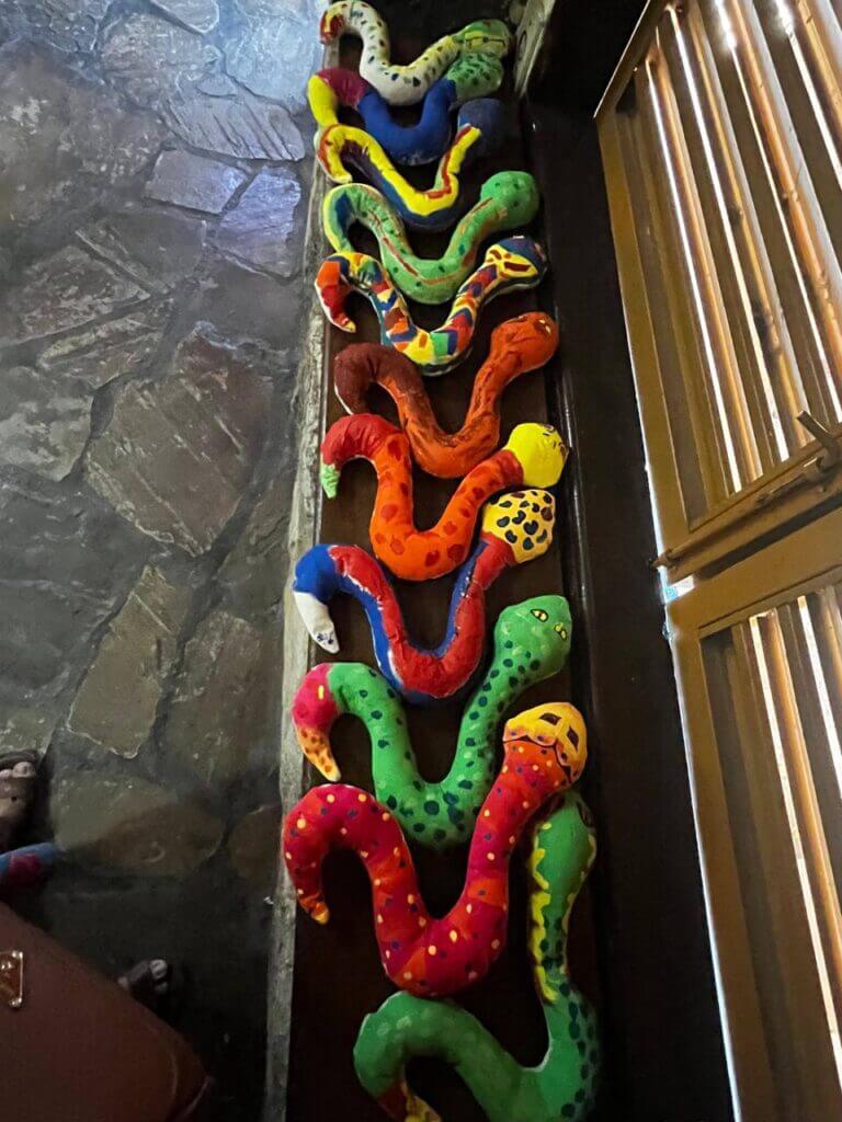 Marina trouxe de casa um livro com a história do Boitatá. Depois da contação, cada um criou o seu próprio boitatá em forma de boneco de pano. As estruturas já estavam preparadas com a costura feita por sua mãe, Fernanda, e coube a cada criança dar vida à criação pintando e colorindo como quisesse.