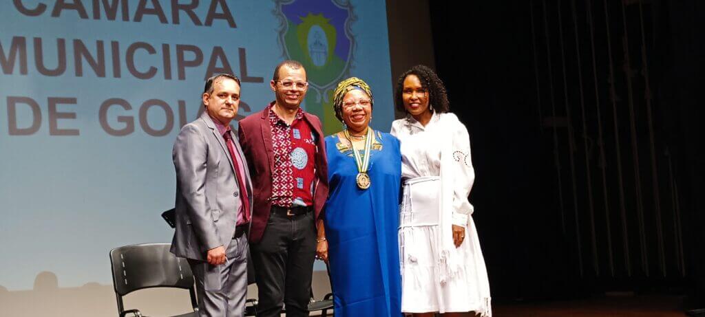 A Comenda tem como nome, Leodegária Brazília de Jesus, a primeira mulher negra a publicar um livro de poesias no Estado de Goiás. Receberam a Comenda Leodegária Brazília de Jesus:
